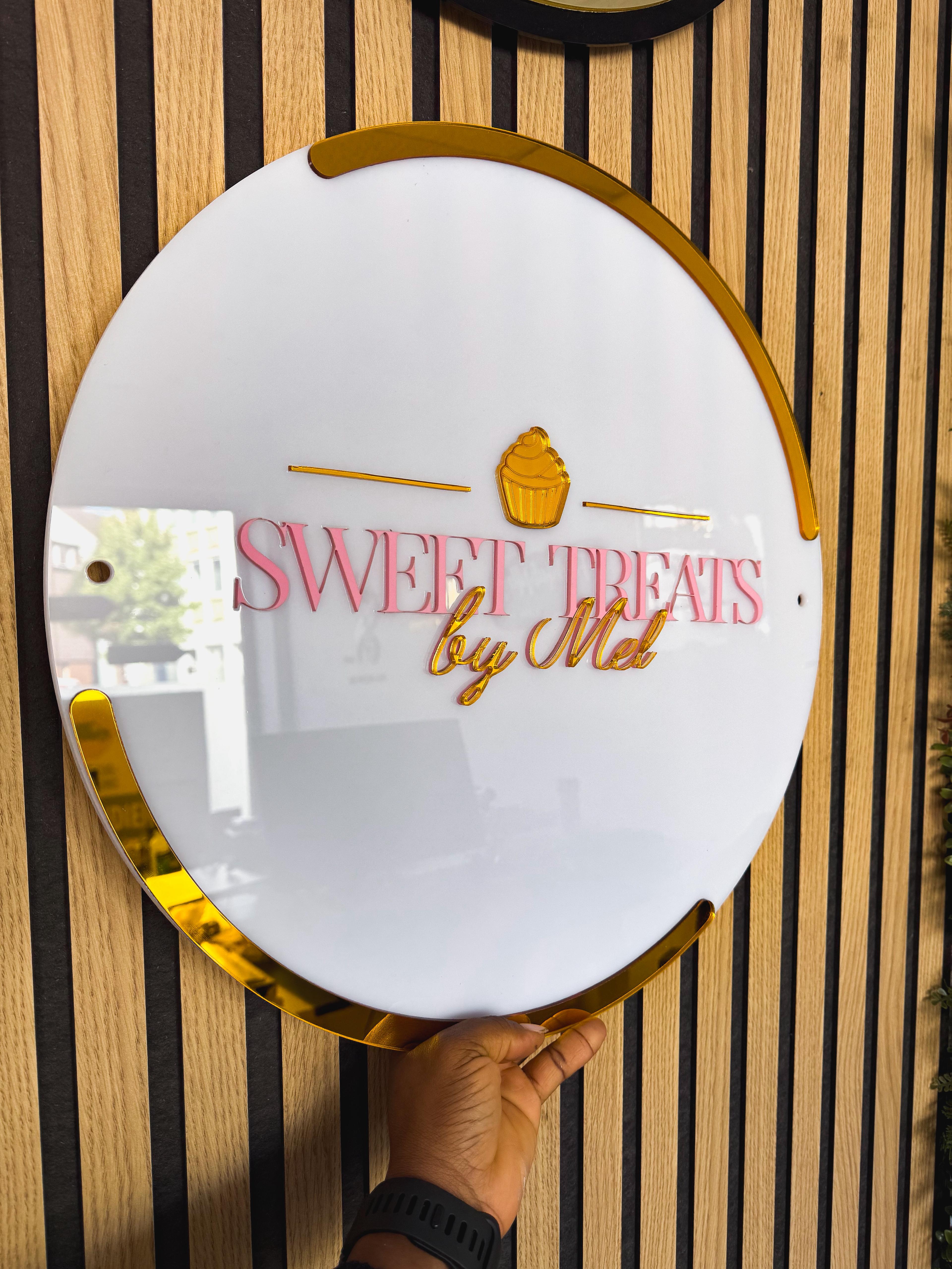 Individuelle Acryl Logo Schilder für Ihr Geschäft. Hochwertig, modern und nach Wunsch gestaltet. Perfekt für Salon, Büro oder Ladenlokal. Produktdetails...